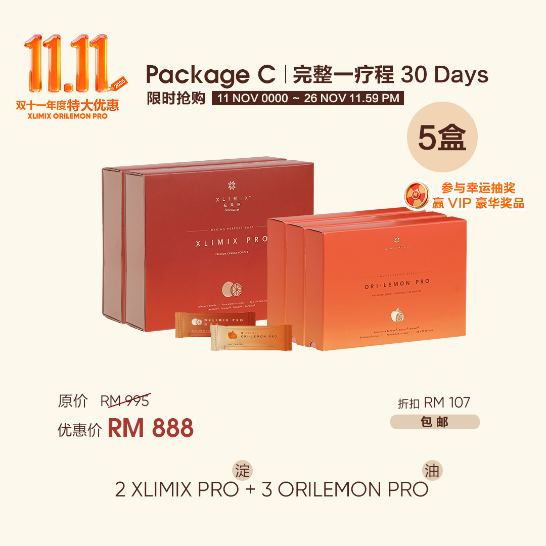 ⭐️这个配套会有2盒 XLIMIX PRO(60 包) & 3盒ORILEMON PRO (60包) 🌟想先尝试产品,要看到明显效果推荐拿5盒❤️ 5盒为完整一个疗程 , 前面2盒体验期,中间2盒吸收期,最后一盒效果期!瘦下来不暴饮暴食 绝不反弹! XLIMIX ORILEMON PRO强效升级了什么独家专利和独特功效?让你不能不TRY 呢?🫵🏻 1. 深度燃烧下半身 大腿 屁股 顽固脂肪 OUT ‼️ 2. 解决 橘皮纹 蜂窝组织 脂肪块 KO!💢 3. 提升 肌肉量 降低BODYFAT 加倍🆙 新城代谢! 4. 帮助 更快速更好吸收 优质成分 ! 5. 有效 *去水肿 * 💧 6. 每一包 提升33%! 分量更多效果更好 😍 7. 排便温和 顺畅,做到 0绞痛! 💯 另外又添加6大顶级专利成分,我们还垄断了意大利专利成分 Selectsieve Rainbow ®️ 签下全马唯一使用权 🇮🇹 效果比第一代🆙 2.5倍燃脂率 ! 🔥 做到4重爆脂 : 阻断 > 分解 > 包裹 > 排出油脂 ! 【 *餐前来一包 一顿饭只吸收三分之一热量而已 *】 意大利的专利厉害之处 : 1⃣️ 瘦全身 2⃣️ 针对解决下半身肥胖 3⃣️ 这些怎样少吃都很难减掉的下半身顽固部位 4⃣️ 燃烧下腹脂肪 5⃣️ 大腿顽固脂肪 6⃣️ 消除蜂窝组织 7⃣️ 橘皮纹跟水肿 !😍🔥🈵️ 服用方法: 餐前一包Xlimix pro , 撕开倒入喝水即可马上开餐!无需冲泡和等待⌛️ 餐后一包Orilemon pro , 撕开倒入喝水即可!无需冲泡和等待⌛️ 一天建议选择其中1餐到2餐服用产品 若想要了解更多或者不知道哪个配套比较适合自己 可以联系WHATSAPP 017-5055261/012-9586233 或点击旁边的WA BUTTON 即可联系客服❤️