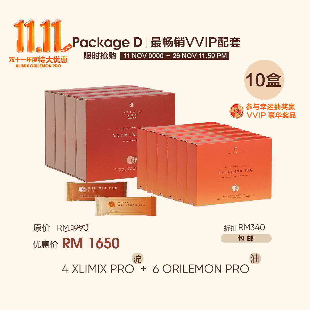 🌟 2个疗程可服用三个月💗 🌟 脂肪细胞更新3个月为一次,坚持瘦身3个月能有效帮助你做到脂肪细胞更新 达到巩固期 ,打造易瘦体质 不会容易吃一点点就发胖 🌟原价一盒RM 199 ,现在除到来一盒只需RM 169 !要买到划算的 推荐9送1✨ 升级版一样是专注阻断淀粉、糖份、油份,在帮你每餐block热量以外 🌟 XLIMIX ORILEMON PRO强效升级了什么独家专利和独特功效?让你不能不TRY 呢?🫵🏻 1⃣️ 深度燃烧下半身 大腿 屁股顽固脂肪OUT‼️ 2⃣️ 解决橘皮纹 蜂窝组织 脂肪块KO!💢 3⃣️ 提升肌肉量 降低BODY FAT加倍🆙 新城代谢! 4⃣️ 更快速更好吸收优质成分 ! 5⃣️ 有效去水肿 ++💧 6⃣️每一包提升33%分量更多效果更好 😍 7⃣️ 排便温和顺畅,做到0绞痛 😍 另外又添加6大顶级专利成分,我们还垄断了意大利专利成分 Selectsieve Rainbow ® 签下全马唯一使用权 🇮🇹 效果比第一代🆙 2.5倍燃脂率 ! 🔥 做到4重爆脂 : 阻断 > 分解 > 包裹 > 排出油脂 ! 意大利的专利厉害之处 : 1⃣️ 瘦全身 2⃣️ 针对解决下半身肥胖 3⃣️ 这些怎样少吃都很难减掉的下半身顽固部位 4⃣️ 燃烧下腹脂肪 5⃣️ 大腿顽固脂肪 6⃣️ 消除蜂窝组织 7⃣️ 橘皮纹跟水肿 !😍🔥🈵️ 服用方法: 餐前一包Xlimix pro , 撕开倒入喝水即可马上开餐!无需冲泡和等待⌛️ 餐后一包Orilemon pro , 撕开倒入喝水即可!无需冲泡和等待⌛️ 一天建议选择其中1餐到2餐服用产品 若想要了解更多或者不知道哪个配套比较适合自己 可以联系WHATSAPP 017-5055261/012-9586233 或点击旁边的WA BUTTON 即可联系客服❤️